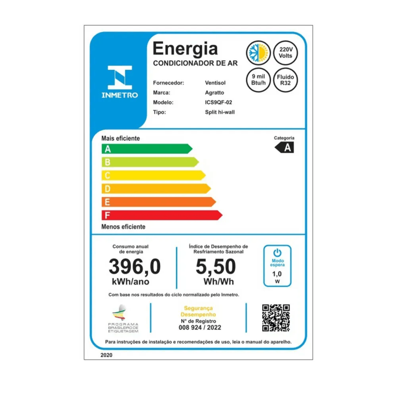Ar Condicionado Split Hi Wall Agratto Neo Inverter 9.000 Btus Quente e Frio 220v R-32