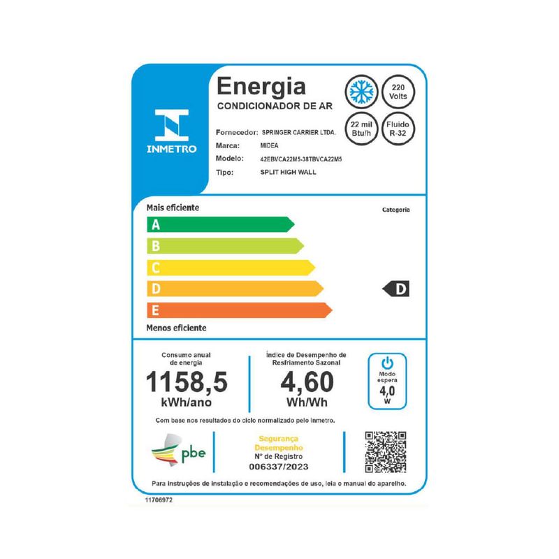 Ar CondicionadoAr Condicionado Hi Wall Inverter22.000 BTU hAr Condicionado Split Hi Wall Midea AI AirVolution Inverter 22.000 Btus Frio 220V R-32