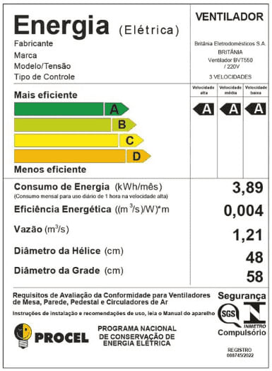 Ventilador de Coluna Britânia 48cm BVT550 Maxx Force Turbo Preto 220V